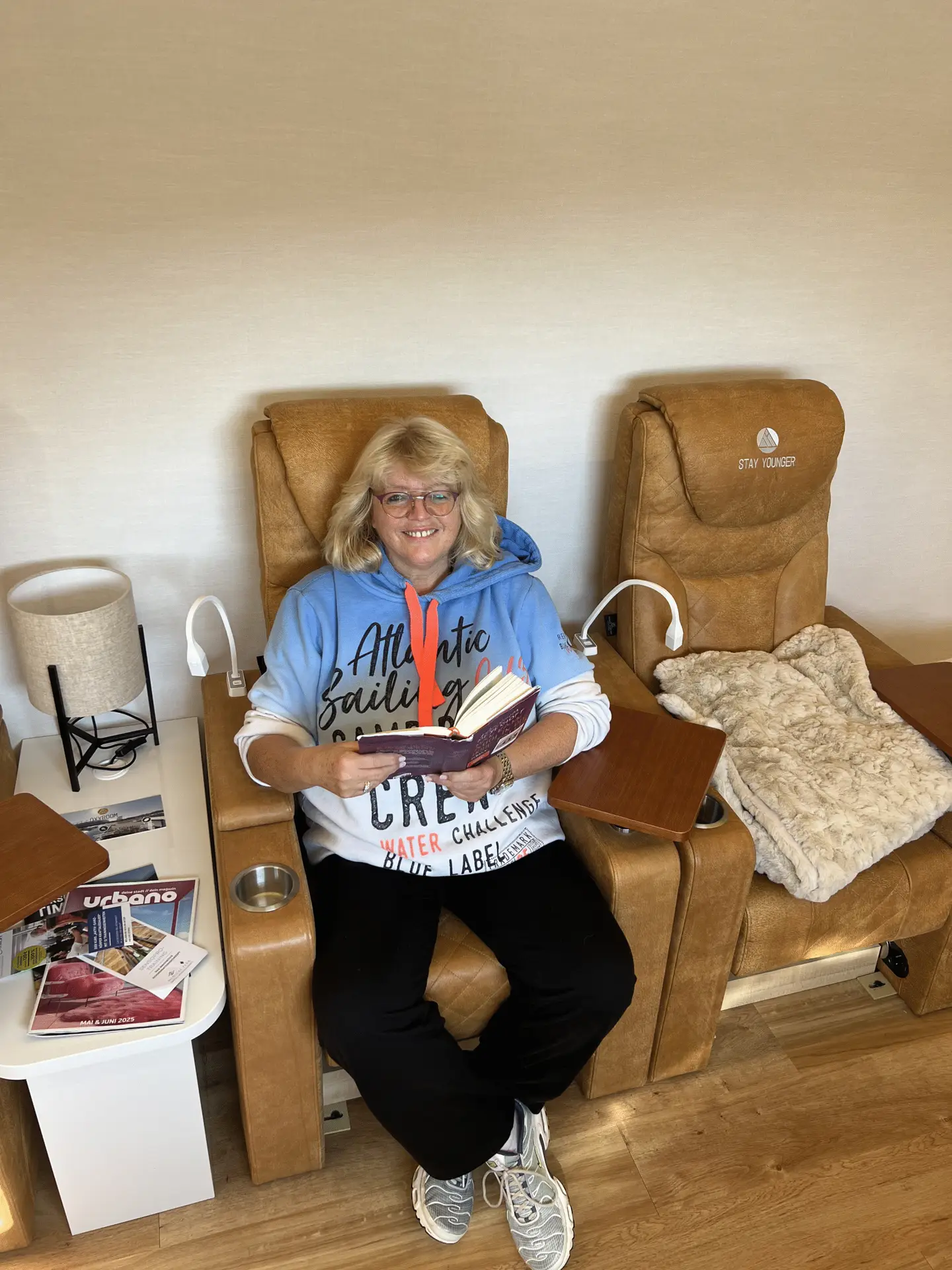 Durch die Sauerstoffsitzungen im Oxyroom wird dein Körper in eine besondere Atmosphäre aus 40 % Sauerstoff, Wasserstoff und Kohlendioxid bei sanft erhöhtem Druck versetzt. Diese Kombination sorgt dafür, dass Sauerstoff tiefer in Zellen und Gewebe gelangt, die Durchblutung verbessert und regenerative Prozesse angeregt werden.