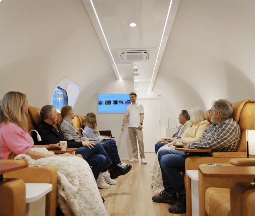 Wer macht was? Wir begrüßen dich, klären kurz Fragen und prüfen, ob heute alles passt. Anschließend wird du in die Schleuse gebracht, wo du auf die besondere Atmosphäre im Oxyroom vorbereitet wirst.